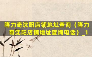 隆力奇沈阳店铺地址查询(隆力奇沈阳店铺地址查询电话)