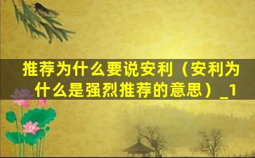 推荐为什么要说安利(安利为什么是强烈推荐的意思)