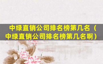 中绿直销公司排名榜第几名(中绿直销公司排名榜第几名啊)