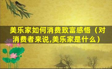美乐家如何消费致富感悟(对消费者来说,美乐家是什么)