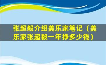 张超毅介绍美乐家笔记(美乐家张超毅一年挣多少钱)