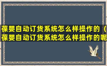 葆婴自动订货系统怎么样操作的(葆婴自动订货系统怎么样操作的呢)