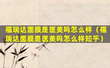 福瑞达面膜是医美吗怎么样(福瑞达面膜是医美吗怎么样知乎)