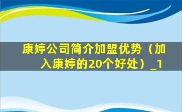 康婷公司简介加盟优势(加入康婷的20个好处)