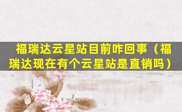 福瑞达云星站目前咋回事(福瑞达现在有个云星站是直销吗)