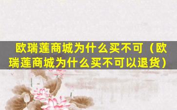 欧瑞莲商城为什么买不可(欧瑞莲商城为什么买不可以退货)
