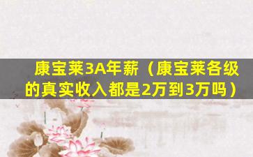 康宝莱3A年薪(康宝莱各级的真实收入都是2万到3万吗)