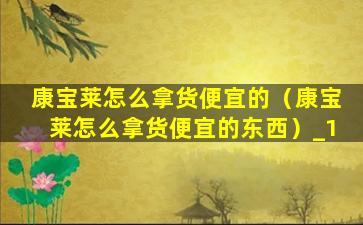 康宝莱怎么拿货便宜的(康宝莱怎么拿货便宜的东西)