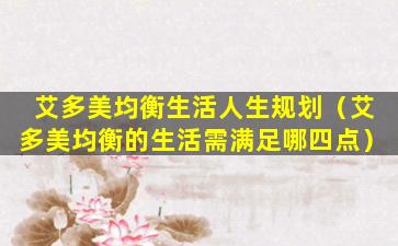艾多美均衡生活人生规划(艾多美均衡的生活需满足哪四点)