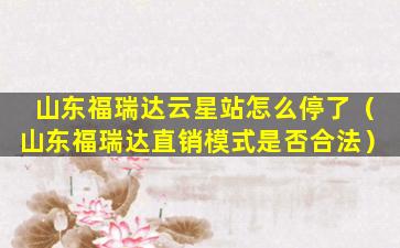 山东福瑞达云星站怎么停了(山东福瑞达直销模式是否合法)