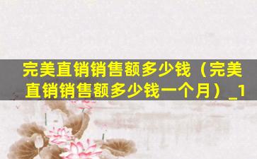 完美直销销售额多少钱(完美直销销售额多少钱一个月)