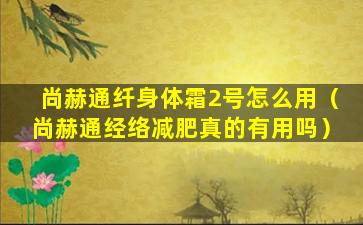 尚赫通纤身体霜2号怎么用(尚赫通经络减肥真的有用吗)