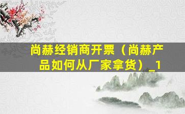 尚赫经销商开票(尚赫产品如何从厂家拿货)
