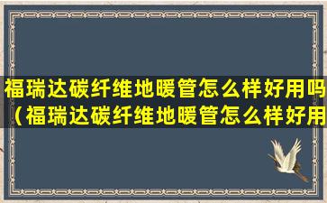 福瑞达碳纤维地暖管怎么样好用吗(福瑞达碳纤维地暖管怎么样好用吗安全吗)