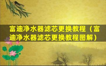 富迪净水器滤芯更换教程(富迪净水器滤芯更换教程图解)