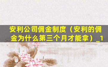 安利公司佣金制度(安利的佣金为什么第三个月才能拿)