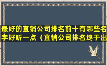 1、最好的直销公司排名前十有哪些名字好听一点
