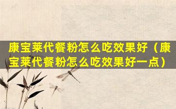康宝莱代餐粉怎么吃效果好(康宝莱代餐粉怎么吃效果好一点)