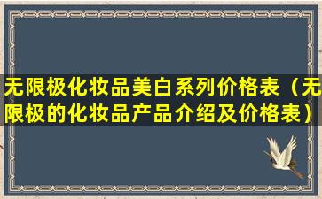 无限极化妆品美白系列价格表(无限极的化妆品产品介绍及价格表)