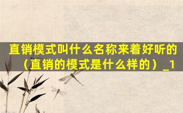 直销模式叫什么名称来着好听的(直销的模式是什么样的)