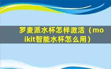 罗麦派水杯怎样激活(moikit智能水杯怎么用)