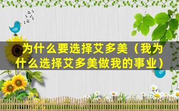 为什么要选择艾多美(我为什么选择艾多美做我的事业)