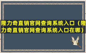隆力奇直销官网查询系统入口(隆力奇直销官网查询系统入口在哪)