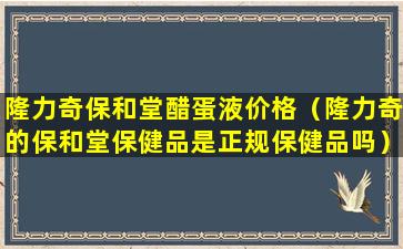 隆力奇保和堂醋蛋液是一种保健食品,深受消费者喜爱。其价格因规格和地区而有所不同。