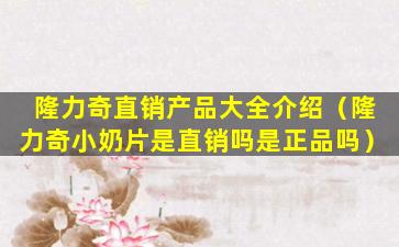 隆力奇直销产品大全介绍(隆力奇小奶片是直销吗是正品吗)