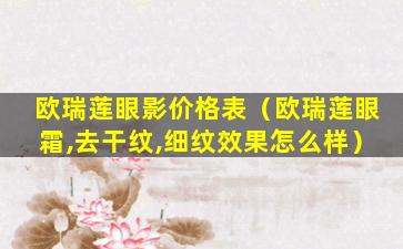 欧瑞莲眼影价格表(欧瑞莲眼霜,去干纹,细纹效果怎么样)