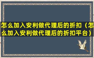 怎么加入安利做代理后的折扣(怎么加入安利做代理后的折扣平台)
