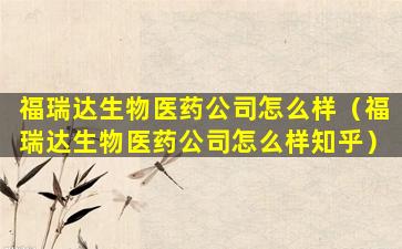 2、福瑞达生物医药公司怎么样知乎