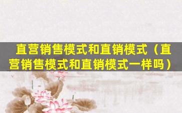 2、直营销售模式和直销模式一样吗