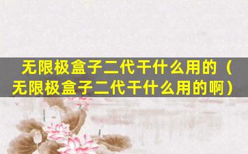 无限极盒子二代干什么用的(无限极盒子二代干什么用的啊)