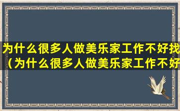 为什么很多人做美乐家工作不好找(为什么很多人做美乐家工作不好找女朋友)