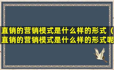直销的营销模式是什么样的形式(直销的营销模式是什么样的形式呢)