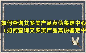 如何查询艾多美产品真伪鉴定中心(如何查询艾多美产品真伪鉴定中心在哪里)