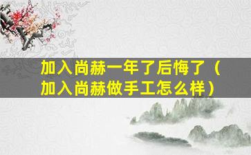 加入尚赫一年了后悔了(加入尚赫做手工怎么样)