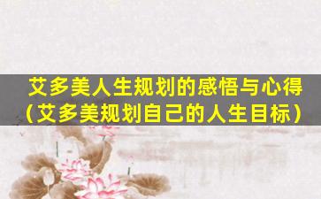 艾多美人生规划的感悟与心得(艾多美规划自己的人生目标)