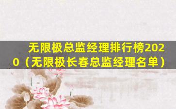 无限极总监经理排行榜2020(无限极长春总监经理名单)