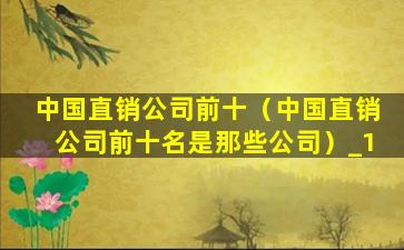 中国直销公司前十(中国直销公司前十名是那些公司)