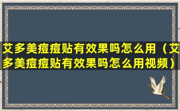2、艾多美痘痘贴有效果吗怎么用视频