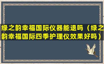 绿之韵幸福国际仪器能退吗(绿之韵幸福国际四季护理仪效果好吗)