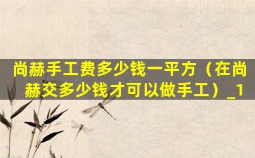 尚赫手工费多少钱一平方(在尚赫交多少钱才可以做手工)