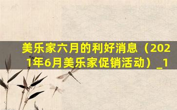 美乐家六月的利好消息(2021年6月美乐家促销活动)