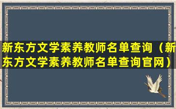 新东方文学素养教师名单查询(新东方文学素养教师名单查询官网)