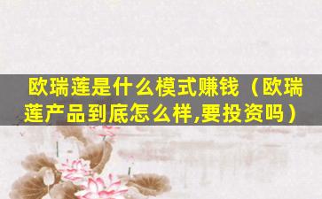 欧瑞莲是什么模式赚钱(欧瑞莲产品到底怎么样,要投资吗)