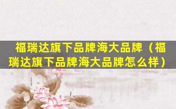 福瑞达旗下品牌海大品牌(福瑞达旗下品牌海大品牌怎么样)