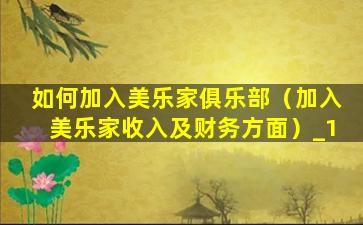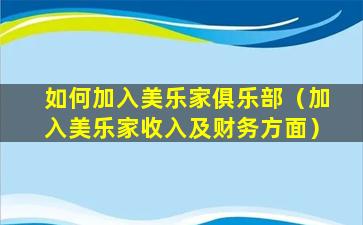 如何加入美乐家俱乐部(加入美乐家收入及财务方面)