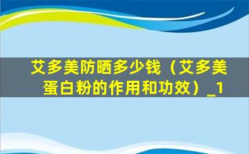 艾多美防晒多少钱(艾多美蛋白粉的作用和功效)